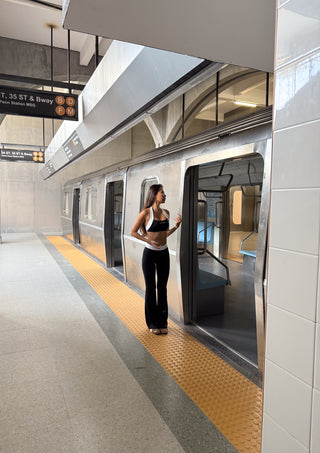 The Two Tone Flow Flare Pants are made to move through yoga mornings, coffee runs, or days that never slow down. With a high-contrast waistband that sculpts and defines, and a fluid flare that elongates the legs, they balance performance and polish in one sleek fit.